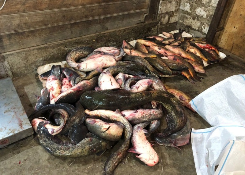 На территории складских и производственных помещений у двух предпринимателей в селе Осыпной Бугор Приволжского района и в посёлке Кировском Камызякского района были обнаружены и конфискованы почти 670 килограммов различной рыбной продукции (сазан, белый амур, судак, жерех), и 260 килограммов икры сома, а также незаконные орудия лова и два навигационных устройства «Гармин». При этом документы на рыбную продукцию отсутствовали.