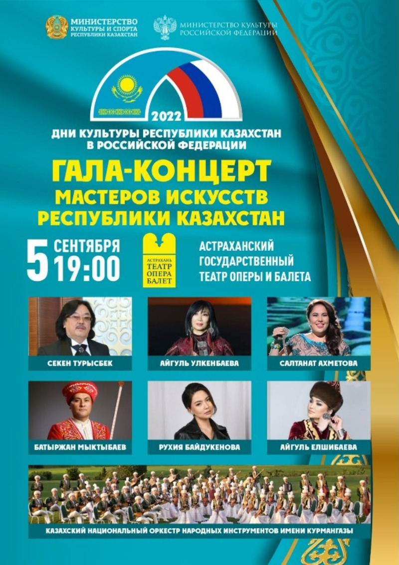 5 сентября в 19:00 в зале Астраханского государственного театра оперы и балета состоится официальное открытие Дней культуры Республики Казахстан в Российской Федерации.