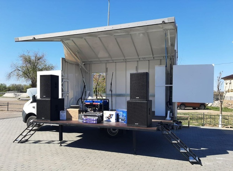 В автомобиле есть всё необходимое для концертов и кинопоказов, а также секция, где артисты могут хранить костюмы и реквизит. Во время мероприятий машина превращается в сцену со световым и звуковым оборудованием.
