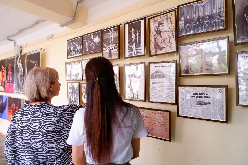 Второе направление выставки посвящено значимой исторической теме — «Астраханский государственный цирк во время войны». Здесь экспонаты демонстрируют зрителю, как самоотверженные и смелые артисты цирка выступали даже в самые сложные времена. Также в этом разделе представлены материалы из фонда Областной научной библиотеки.