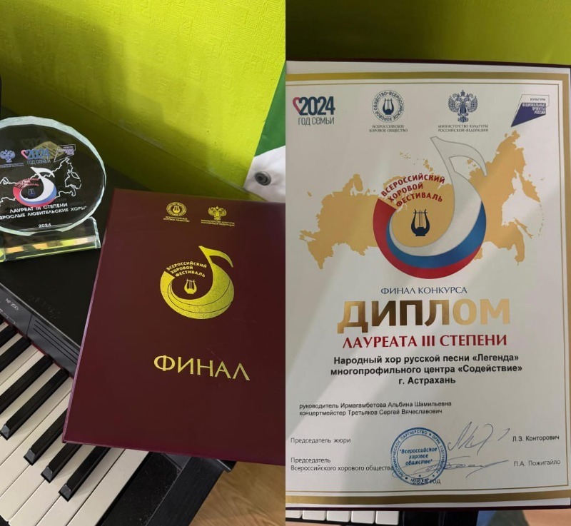 В гала-концерте финалистов X Всероссийского хорового фестиваля участвовали 26 взрослых и 18 детских хоровых коллективов из разных регионов страны. В числе награждённых оказался и народный хор русской песни «Легенда» многопрофильного социального центра «Содействие» из Астрахани, который завоевал бронзу. Ранее хор «Легенда» занял первое место в конкурсе коллективов ЮФО. Об этом сообщает министерство социального развития и труда Астраханской области.