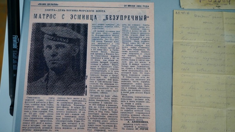 Гости выставки увидят около тридцати писем, написанных Юрием Ивановичем Роговым (1920–1942), участником обороны Севастополя. Эти послания из коллекции астраханского краеведа Сергея Львова сопровождаются другими экспонатами, которые дополняют общую тематику выставки.