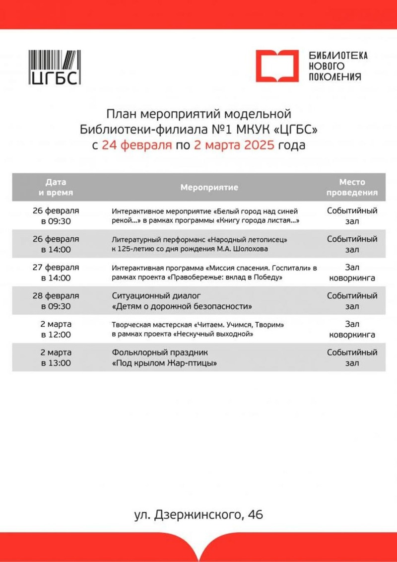 Интересные мероприятия пройдут и во второй модельной библиотеке города, расположенной в Трусовском районе по улице Дзержинского, 46.