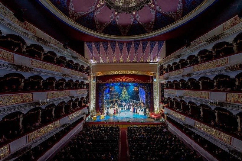 «Рождественский бал в опере» — это парад «визитных карточек» оперной сцены: арии из шедевров Жака Оффенбаха, Джоаккино Россини, а также лёгкие мелодии из знаменитых оперетт Имре Кальмана, Иоганна Штрауса, Франца Легара.