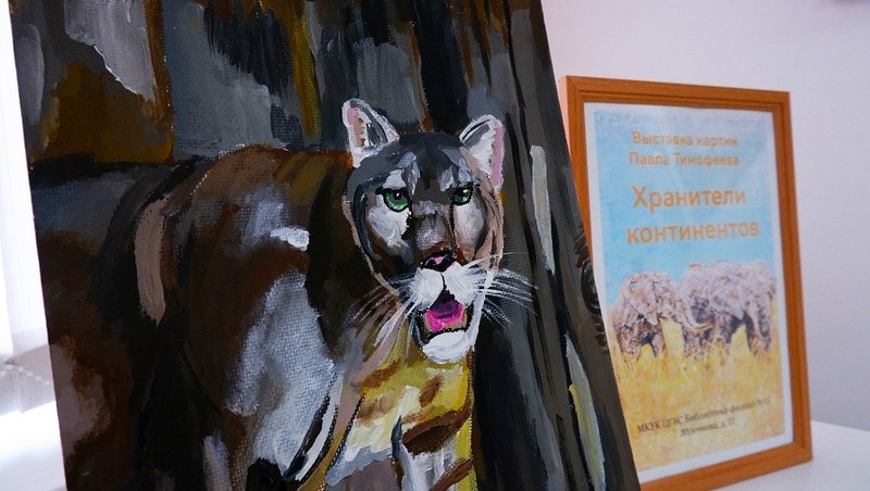 На его первой персональной выставке представлено свыше двадцати картин, выполненных акрилом. На полотнах изображены различные животные: дикая пума, ленивая панда и величественные киты, рассказывает региональный минкульт.