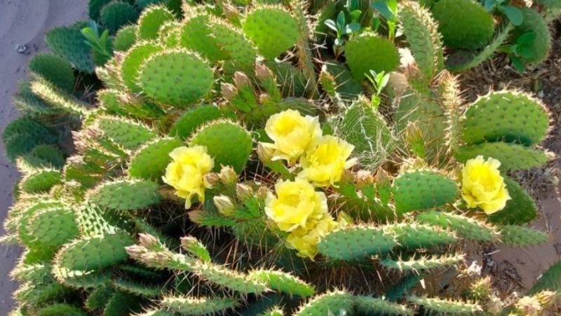 Традиционно цветение экзотического вида проходит в конце мая — начале июня и длится несколько дней. Первые жёлтые цветочки опунций этого сезона заметили на прошлой неделе в урочище Кордон Харабалинского района.