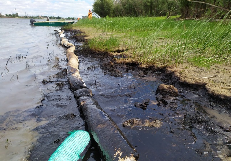 24 июня в дежурную службу Каспийского филиала поступила заявка инспекции государственного портового контроля порта на проведение срочных работ по предотвращению дальнейшего загрязнения акватории. На месте происшествия спасателями произведена разведка местности на левом берегу реки Бахтемир в районе 0,5 км ВКМСК. Нефтяные пятна тянулись вдоль береговой полосы примерно на 1 км шириной до 1 метра.