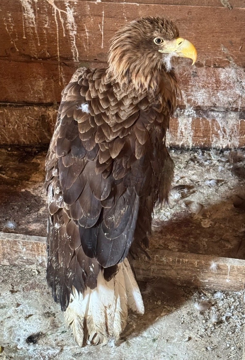 К сожалению, его сосед, пострадавший от выстрела прошлой зимой, не смог сохранить крыло, но его жизни ничего не угрожает. Пернатый хищник чувствует себя хорошо и обладает отличным аппетитом.