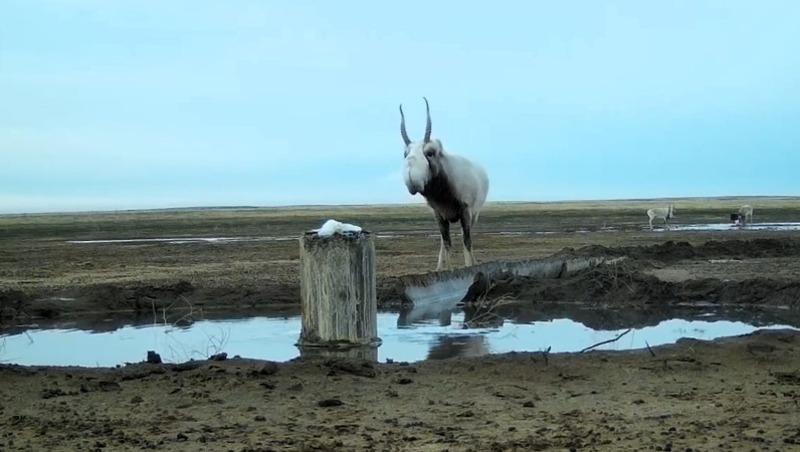 На снимках волки уверенно осматривают окрестности водоёма, а самец сайгака наслаждается глотком свежей воды. Орланы-белохвосты тоже с удовольствием мочат свои перья в ледяной воде, и это по-настоящему захватывающее зрелище.