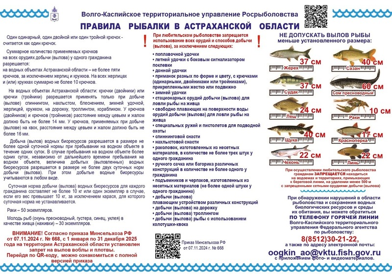 Также астраханцам и гостям региона стоит помнить о запрете на вылов воблы и плотвы. Ограничение на их добычу введено приказом Министерства сельского хозяйства России на весь 2025 год.