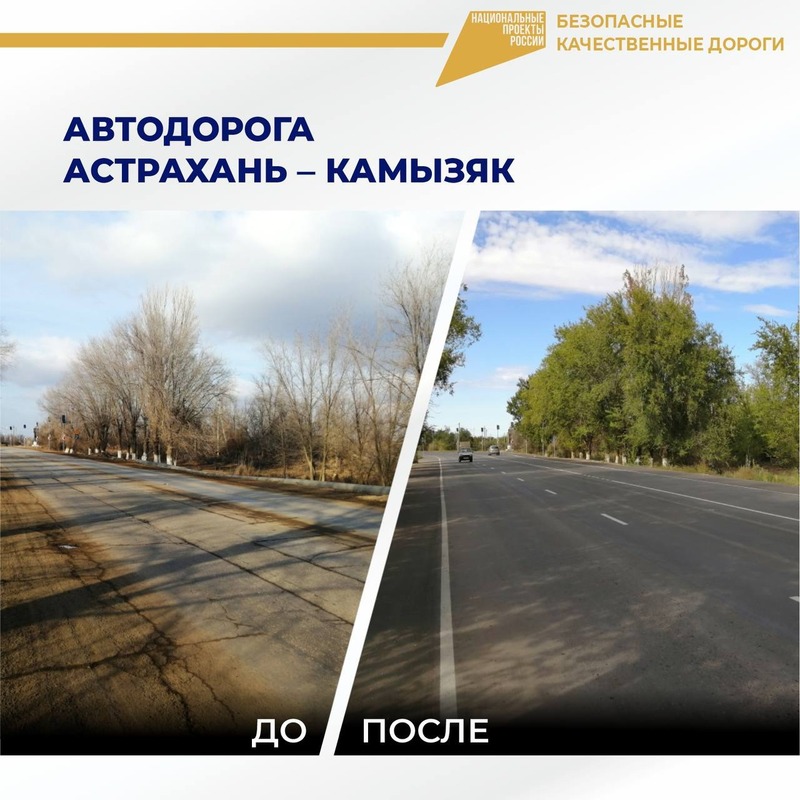 В рамках нацпроекта «Безопасные качественные дороги» идёт масштабный ремонт региональных дорог. Так, на трассе Астрахань — Камызяк в нормативное состояние привели два участка протяжённостью более десяти километров.