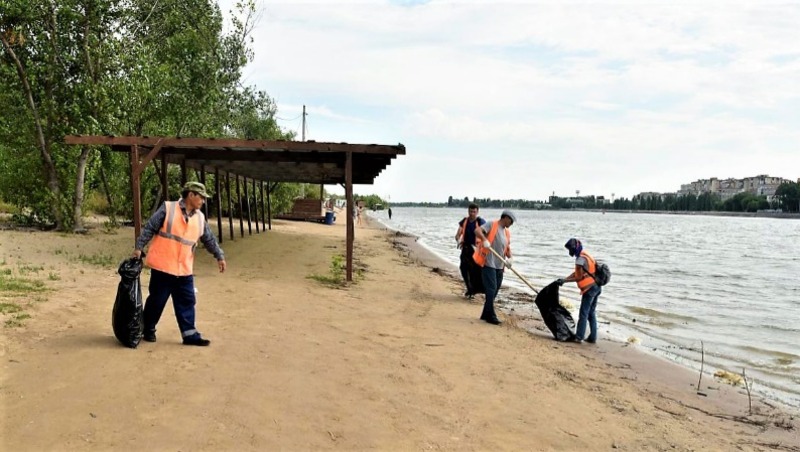 Глава Астрахани Олег Полумордвинов провел выездное совещание на острове Городском, где идет подготовка берега к началу купального сезона.