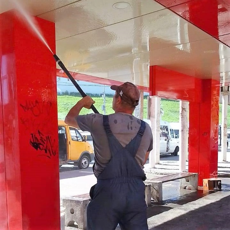 Коммунальные службы города приводят в порядок остановочные комплексы, очищая их от пыли и грязи. Работы проведены на улице Адмиралтейской. Следующие в очереди — Боевая и Ленина.