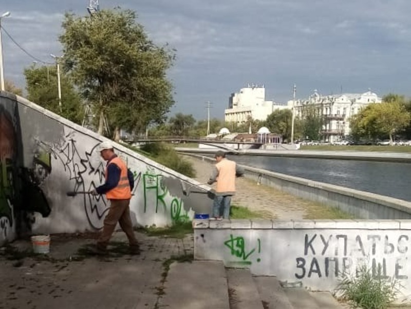 На данный момент в Астрахани проходит ликвидация незаконных надписей и граффити с бетонных плит вдоль городских каналов. На прошлой неделе было закрашено более 700 квадратных метров различных рисунков.