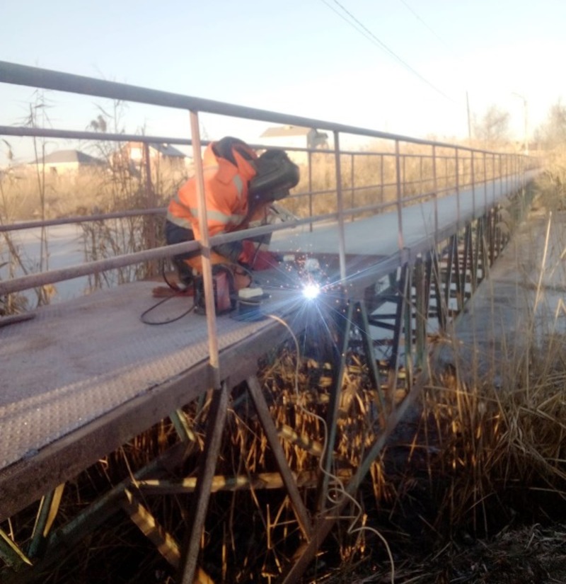 Специалисты МБУ «Мосты и каналы» полностью поменяют металлический настил и перила с обеих сторон сооружения.