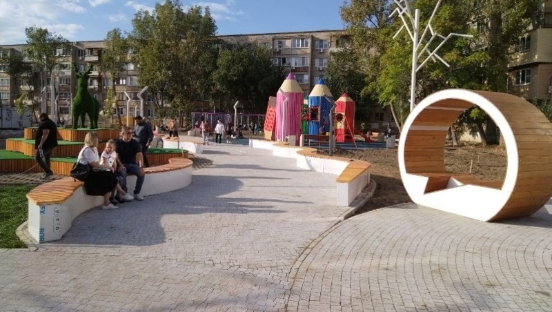 — Благоустройство участка на Каунасской улице и модернизация футбольного поля около СОШ № 35 в Трусовском районе.