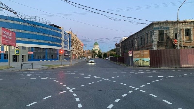 Разметку уже покрасили на пересечении улицы Боевой с Николая Островского, Богдана Хмельницкого, Бакинской, Моздокской, пл. Свободы, улицы Адмиралтейской с Никольской и Красной набережной, улицы Академика Королёва с Савушкина.