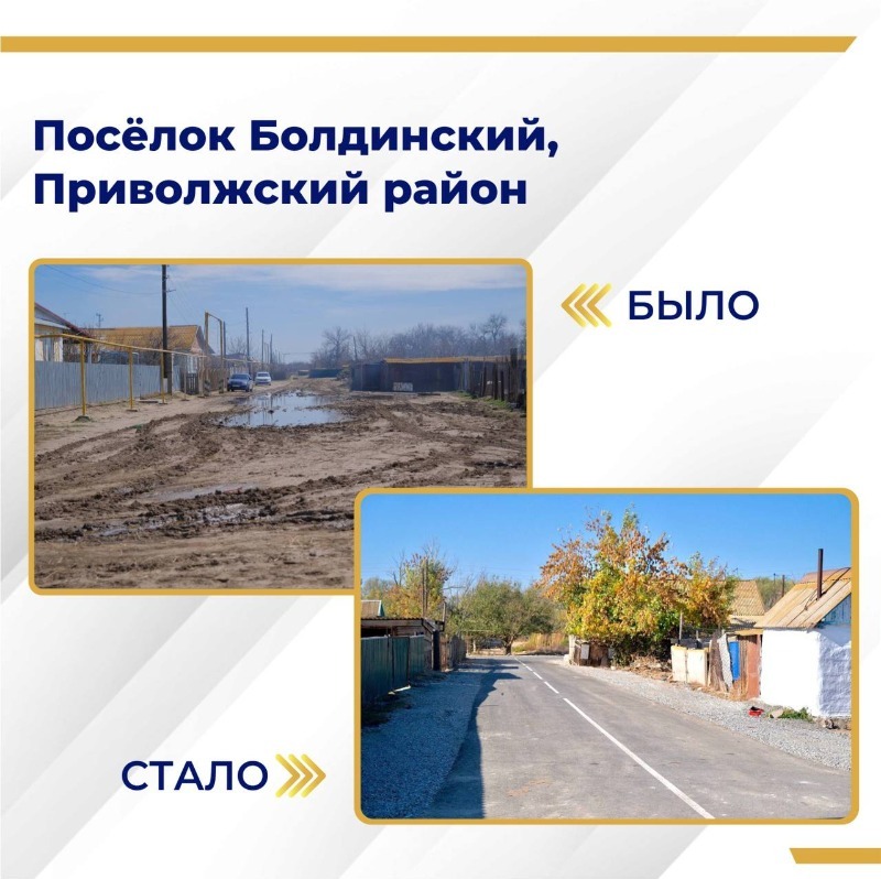 Губернатор Астраханской области Игорь Бабушкин сообщил в своём телеграм-канале, что в посёлке Болдинский Приволжского района реконструировано более 1,2 км дорог и заасфальтированы все улицы. Специалисты также установили стационарное освещение и обустроили разворотную площадку для школьного автобуса.
