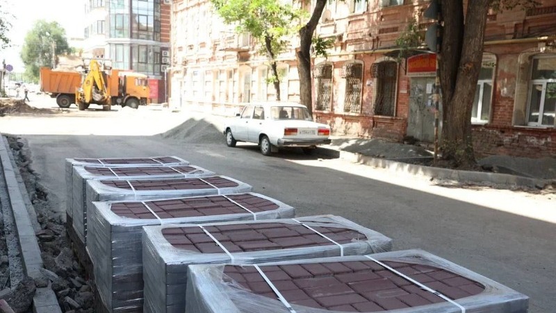 В центре города полным ходом идёт комплексное благоустройство пешеходных зон и дорожного полотна. На объекте задействованы шестнадцать специалистов и пять единиц специализированной техники. Подрядная организация приступила к реализации проекта 1 апреля текущего года.