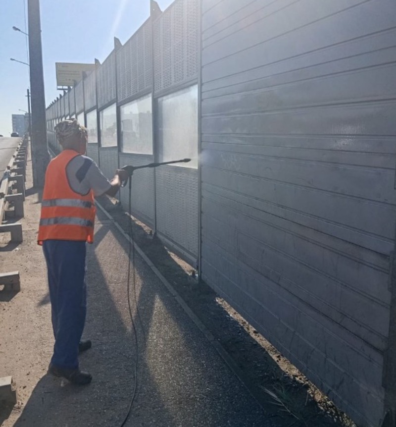 Как только в Астрахани установилась благоприятная погода, коммунальщики вновь взялись за уборку. Так, вчера сотрудники муниципального учреждения «Мосты и каналы» очистили шумозащитные экраны и бордюры на Вокзальном путепроводе и на мосту у пересечения с улицей Боевой, используя оборудование под высоким давлением.