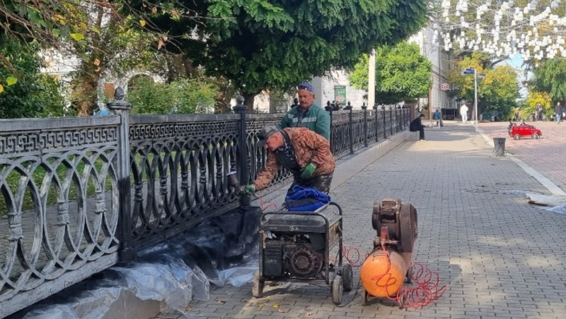 По информации главы Астрахани Игоря Редькина, сейчас специалисты муниципального учреждения «Зелёный город» приступили к покраске леерного ограждения по всему периметру сада, предварительно очистив его с помощью аппарата высокого давления.
