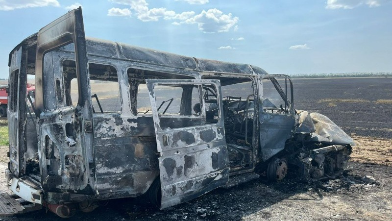 Выехав на встречную полосу, он совершил лобовое столкновение с пассажирской Газелью. От удара обе машины загорелись.
