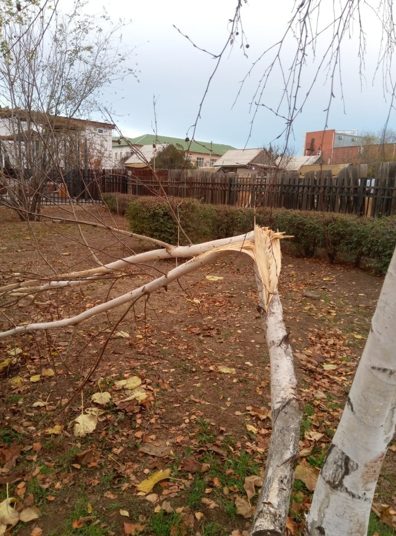 В сквере Победы хулиганы сломали берёзу, раскидали ветки и повесили их на другие деревья.