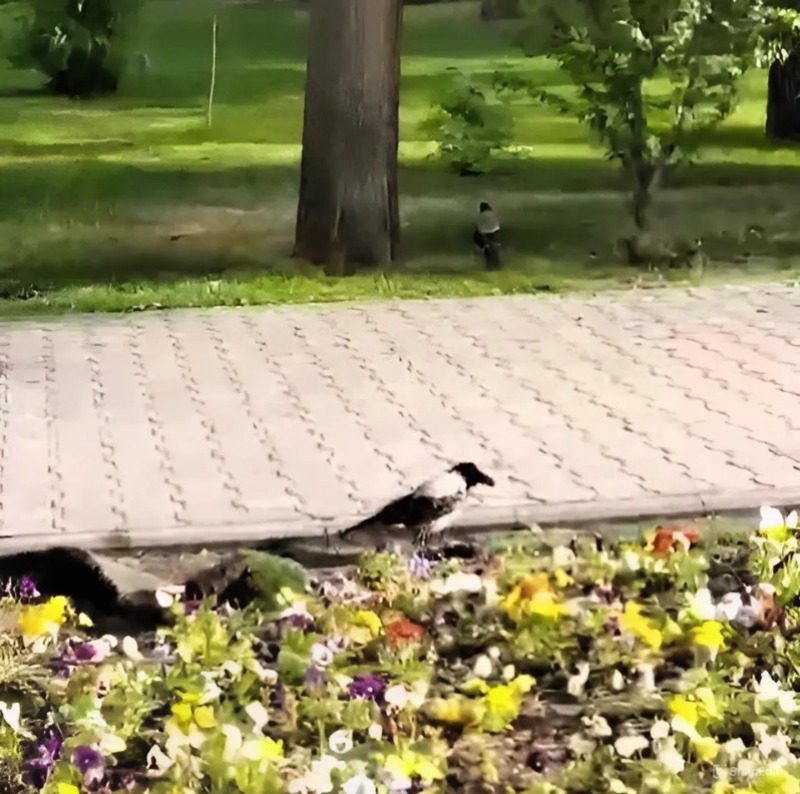Воронам, видимо, стало скучно, и они решили развлечься таким способом. Коммунальные службы уже восстановили декоративную окантовку из искусственного газона, и на следующей неделе планируется обновление клумб новыми цветами.