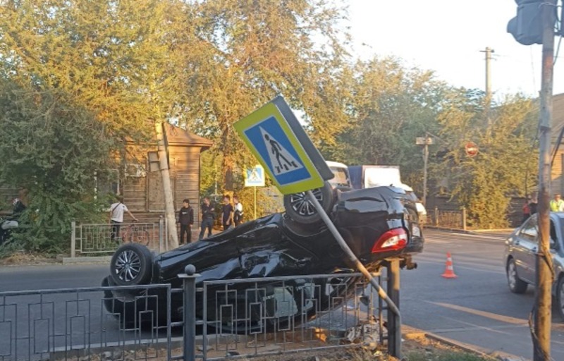 Водитель автомобиля Mitsubishi не пропустил LADA Granta, и в результате на высокой скорости произошло столкновение. От удара отечественный автомобиль перевернулся на крышу.