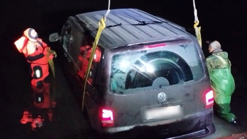Вечером в воскресенье, 13 октября, в районе села Хмелёвка на реке Гандурино легковой автомобиль Volkswagen Multivan съехал в воду.