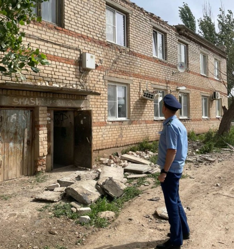 Прокуратура проводит проверку падения конструкций двухэтажного жилого дома на улице Астраханской в городе Ахтубинске. 17-квартирное здание было признано аварийным в 2020 году.