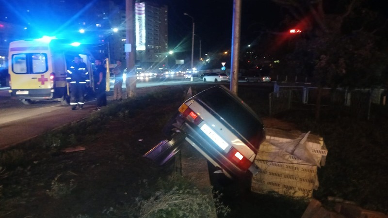 В результате удара ВАЗ перевернулся. Его водитель пострадал и был доставлен в больницу.
