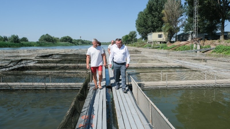 Первым пунктом повестки дня стало посещение ООО «Царь рыба — садковое осетровое хозяйство». Предприятие аквакультуры действует на территории муниципалитета с 2010 года. Основной акцент хозяйство делает на выращивании товарной рыбы осетровых пород, производстве пищевой икры и рыбопосадочного материала на реализацию. Имеется производственный участок на реке Трёхизбинка, где расположены 200 садков для содержания и выращивания рыбы осетровых пород. В 2022 году реализовано 17,2 тонны осетровых. На 1 июля 2023 года выращено 52 тонны товарной рыбы осетровых пород, реализовано 7,65 тонны. Директор предприятия Сергей Рогожкин сообщил Игорю Мартынову, что в хозяйстве на данный момент находится порядка 63 тысяч особей стерляди и осетра, в планах — расширение производства.