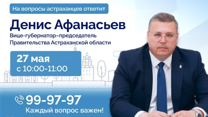 Диалог вице-губернатора с астраханцами состоится 27 мая в рамках проекта «Прямая связь с правительством Астраханской области».