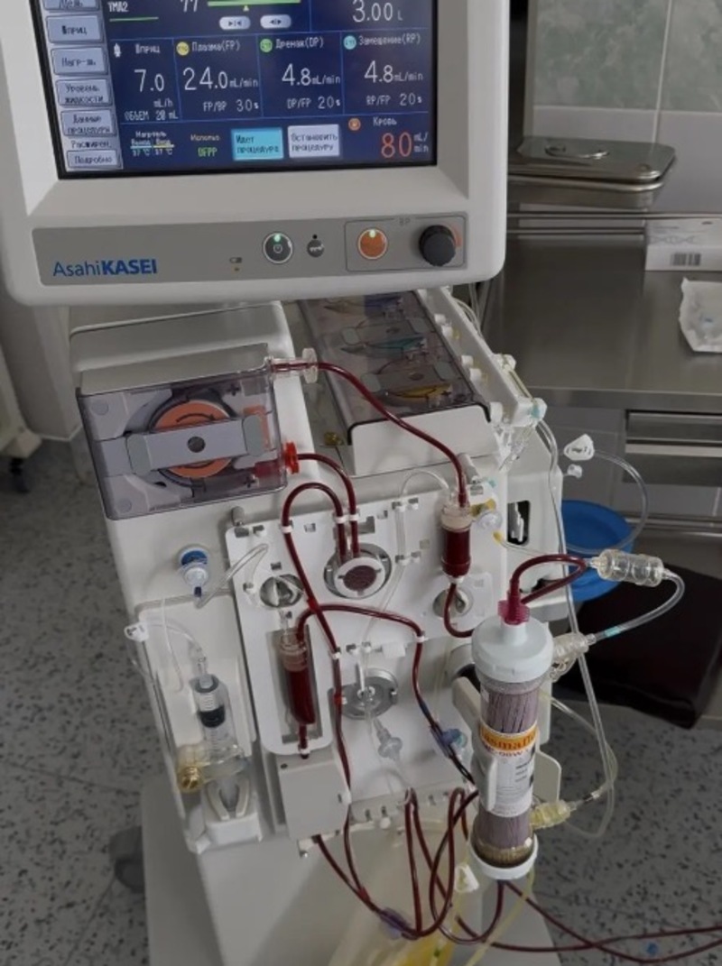 До этого времени процедура была доступна только в федеральных центрах. В отличие от классического плазмафереза, когда плазма удаляется полностью, каскадная фильтрация действует как хирургический скальпель. Кровь пациентов, страдающих тяжелыми нарушениями липидного обмена, пропускают через систему из двух фильтров. Первый отделяет клетки крови. Второй — самый важный, работает как мелкое сито: задерживает только крупные молекулы «вредного» холестерина, возвращая очищенную плазму обратно в организм. Специалисты отделения диализа и эфферентных методов терапии и областного липидного кабинета уже провели более 30 таких процедур.