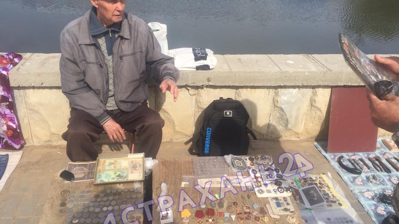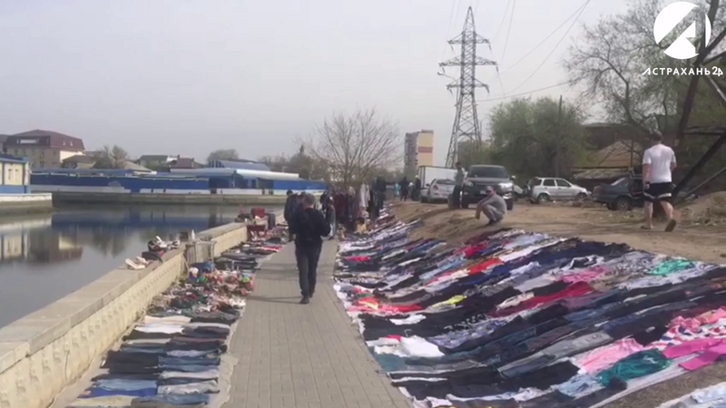 Под тёплыми лучами весеннего солнца, на бетонных парапетах, вымощенной тротуарной плиткой дорожке и даже земляных откосах берега реки Кутум расположились торгующие. Здесь можно встретить как тех, кто пришёл пристроить в хорошие руки добротные вещи, скопившиеся за ненадобностью, так и профессиональных продавцов, из года в год приходящих на свои постоянные места и зарабатывающих этой торговлей себе на жизнь.