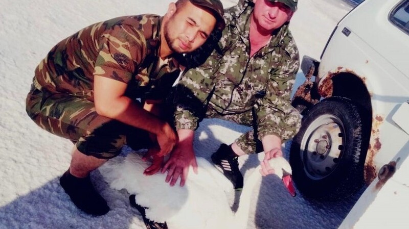 Информацию о затруднительном положении лебедей передали местные жители. Инспектор сразу же отреагировал на сообщение и выехал на место происшествия. Одну из птиц поймали сразу, так как на её крыльях скопилась соль, которая мешала ей взлететь.