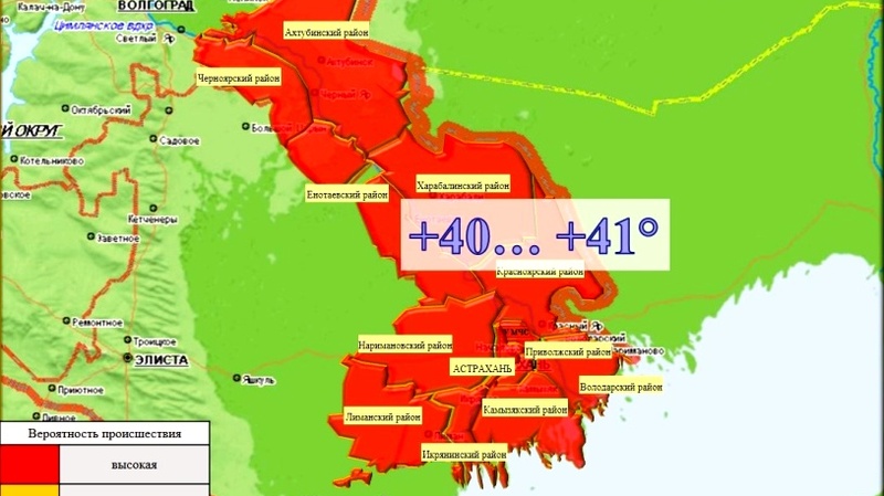 Причём по пожарному прогнозу также на всей территории Астраханской области сохранится чрезвычайная пожароопасность 5-го класса, которую в спасательном ведомстве принято обозначать красным цветом. Также существует вероятность возникновения ЧС, связанных с ландшафтными пожарами, в том числе в особо охраняемых природных зонах Ахтубинского, Володарского, Камызякского и Икрянинского районов.