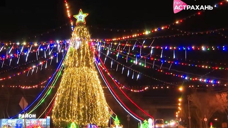 Вечером 22 декабря зажглись огни на главной ёлке астраханского правобережья, находящейся на разворотном кольце Мостстроя.