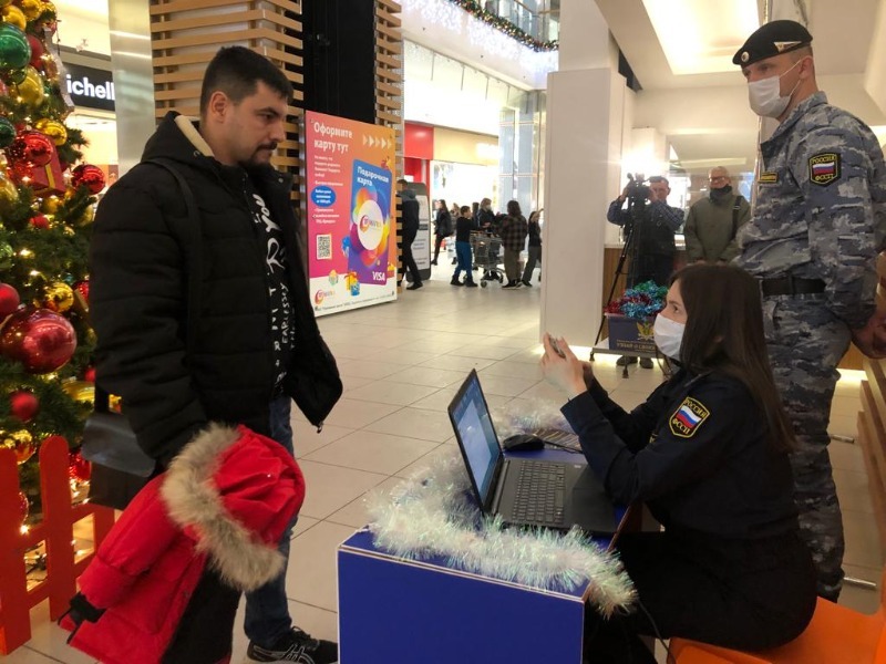 В торговом центре на площади Вокзальной сотрудники регионального Управления федеральной службы судебных приставов провели акцию «В Новый год без долгов». Все желающие могли проверить данные о задолженностях. Если при проверке у гражданина был выявлен долг, то он получал елочный шар красного цвета, а если нет, то зеленого.