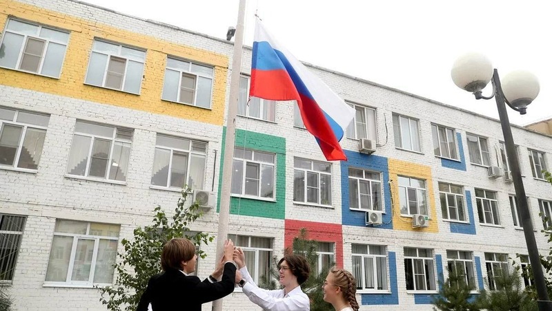Первый понедельник учебного года в гимназии № 4 начали с исполнения гимна Российской Федерации и поднятия флага. Торжественную линейку посетил вице-губернатор Астраханской области Павел Паутов.