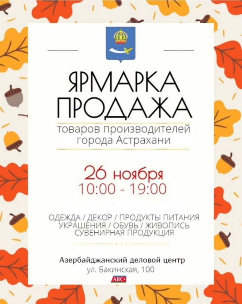 Массовая продажа товаров местных производителей состоится 26 ноября с 10:00 до 19:00 по адресу: улица Бакинская, 100.