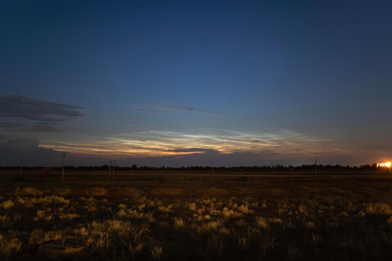 Астраханские астрономы Ольга Семисотова и Лилия Филоненко выехали на северо-западную окраину города. Там им удалось сделать эффектные снимки серебристых облаков.