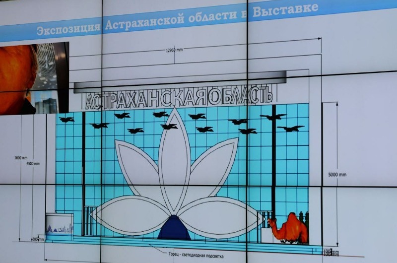 Строительство павильона Астраханской области планируют завершить до конца октября. Здесь установят интерактивные площадки и фотозоны. Центром притяжения станет мультимедийный лотос. Лепестки цветка — экраны 4 на 1,5 метра. На каждом будут транслировать видеоролики о культуре, традициях, спорте, туризме и достижениях региона.