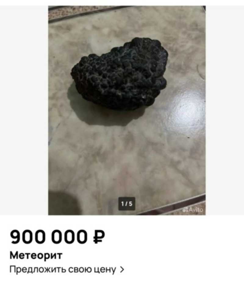 Популярный сайт бесплатных объявлений поразил астраханцев своим очередным лотом. Как сообщают наши коллеги из «Астрахань.ру», продавец утверждает, что у него есть железный метеорит длиной 7 см и шириной 5 см. За такой редкий артефакт он хочет получить 900 тысяч рублей.