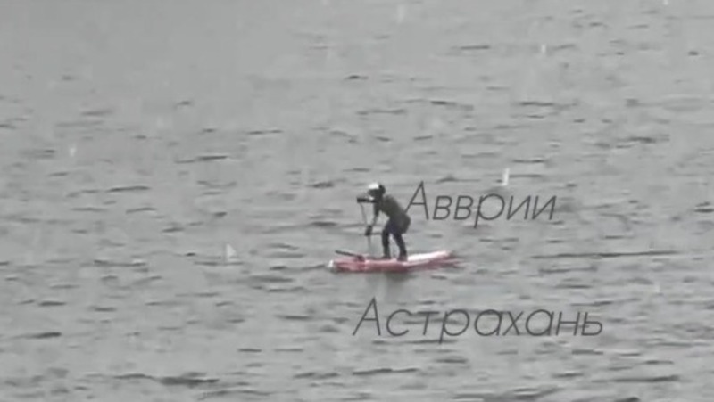На видео запечатлели, как он катается по каналу имени Варвация на сапборде, пока всё вокруг заметает снегом.