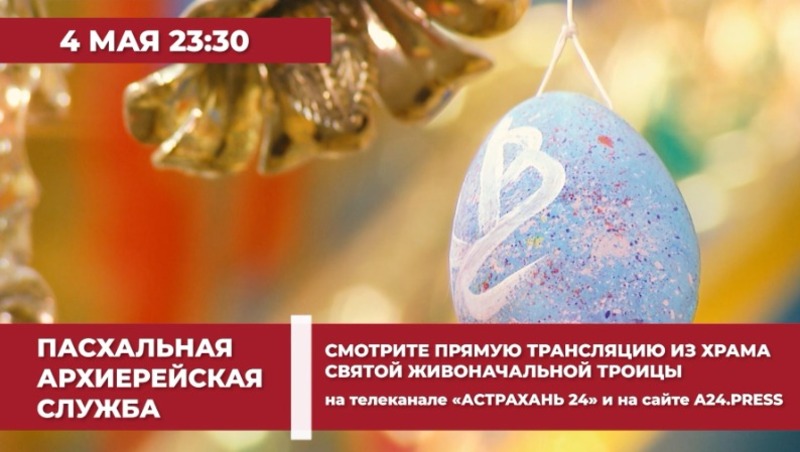 Зрители «Астрахани 24» могут посмотреть прямую трансляцию архиерейской службы из храма Святой Живоначальной Троицы на телеканале и сайте 4 мая в 23:30.