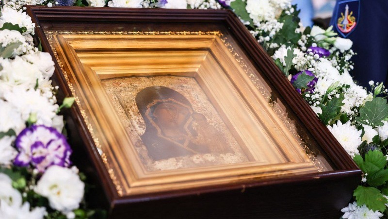 «Московский список Казанской иконы Божией Матери — икона Русских Побед. Искусствоведы относят написание этого образа примерно к 1580 году. В годы Смутного времени Казанская икона стала полковым образом народного ополчения Минина и Пожарского и в 1611 году была принесена под занятую польско-литовскими интервентами Москву. С 1918 года икона считалась утерянной, но недавно вновь обретена трудами Святейшего Патриарха Московского и всея Руси Кирилла», — рассказали в пресс-службе губернатора.