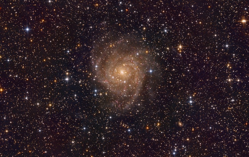 Впечатляющая космическая «вертушка» относится к типу спиральных галактик. По своим истинным размерам она уступает нашей галактике в два раза, а по количеству звёзд — в четыре раза. IC342 относительно близка к нам. Наиболее осторожные оценки дают расстояние в 11 миллионов световых лет, что в пять раз дальше Туманности Андромеды.