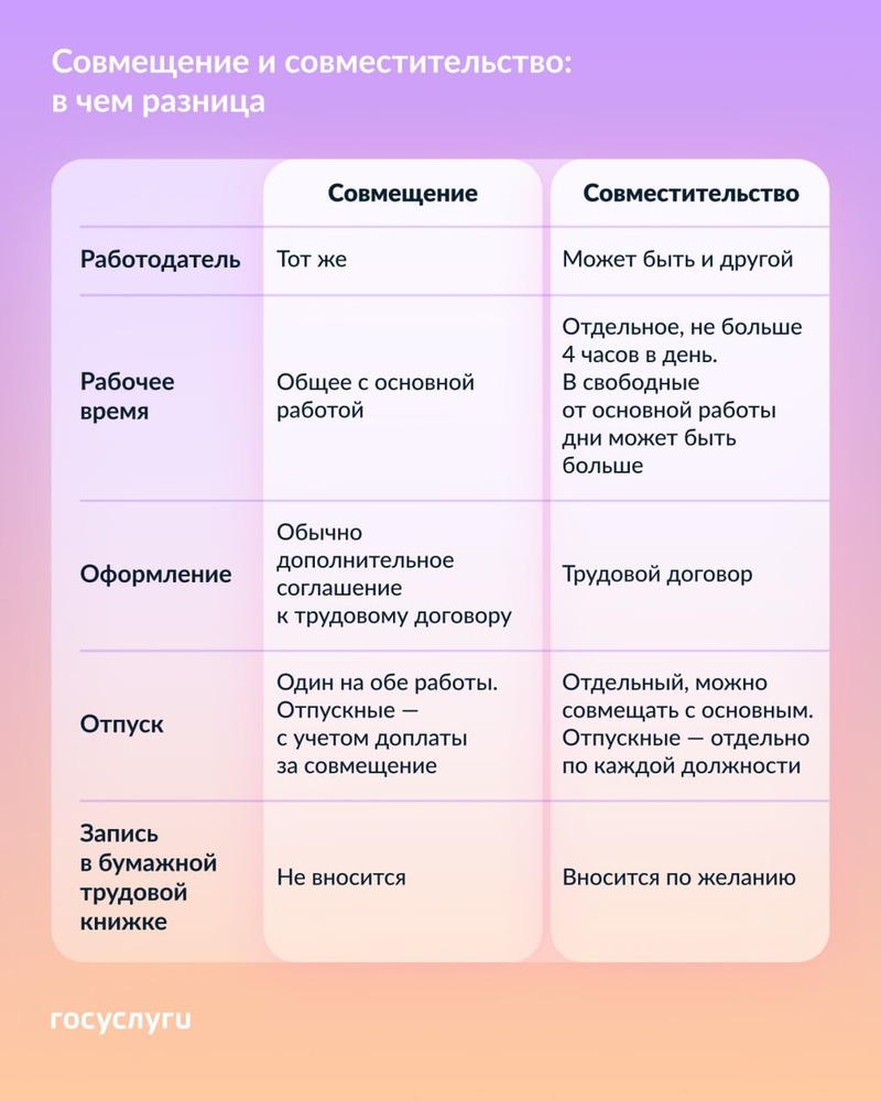 Как рассказал телеканал «Саратов 24», на портале «Госуслуги» появилась информация о различиях между совмещением должностей и совместительством. Оба понятия касаются дополнительной работы, но имеют разные юридические и правовые последствия.